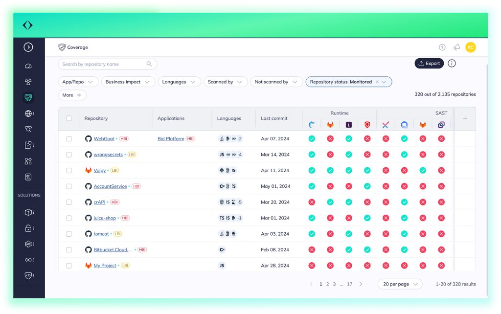With the insights above into which repositories use web APIs and the security tools running in organizations, Apiiro can uniquely map testing coverage to expose where tools are running and where there may be gaps. For large organizations especially, keeping track of what tools are running where is a challenge, leading to overspending on securing low priority applications or gaps in security testing coverage for important ones.