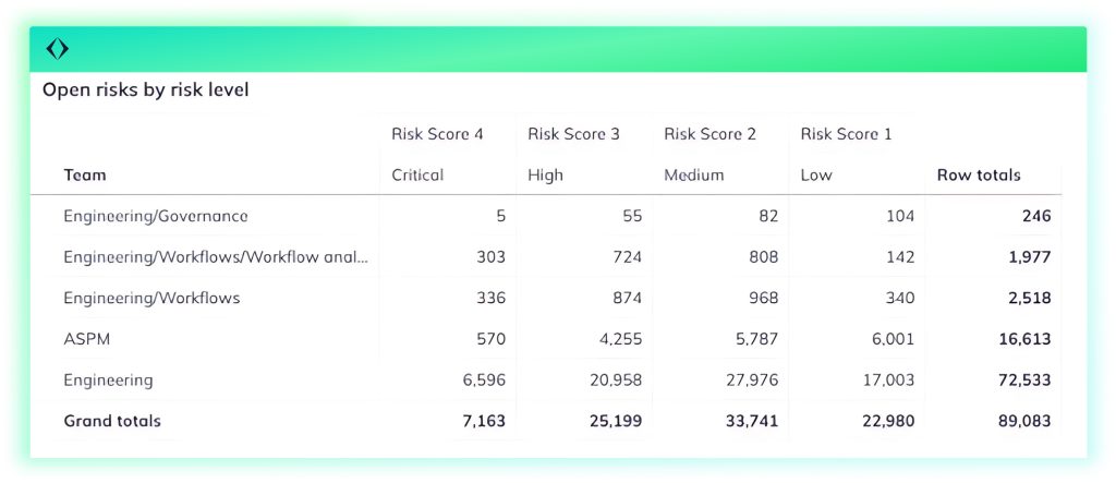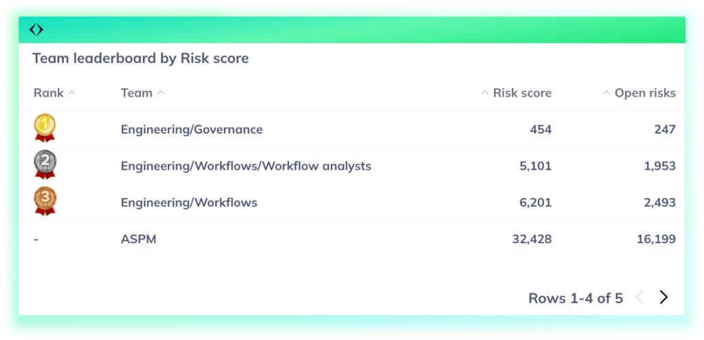 With a clear breakdown of risks by severity—Critical, High, Medium, and Low—the Leaderboard provides a granular that enables teams to focus their efforts where they matter most, addressing high-priority issues without losing sight of lower-severity risks. By visualizing this data, teams can make informed decisions and maintain a proactive approach to risk management.