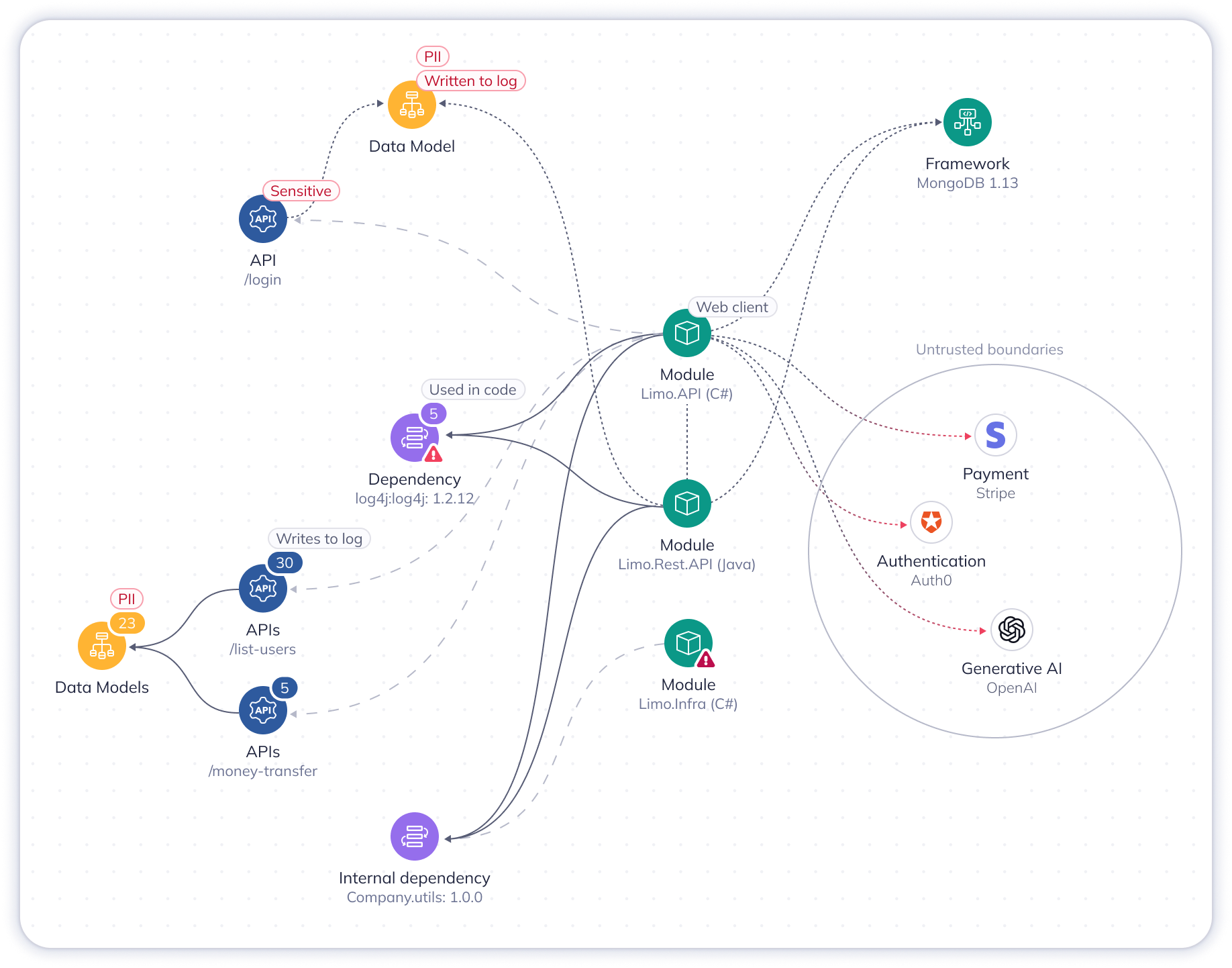 Only DCA discovers and maps every single application component (APIs, PII in code, GenAI frameworks, developer knowledge and ownership) to give you the complete picture of your software architecture from code-to-runtime.